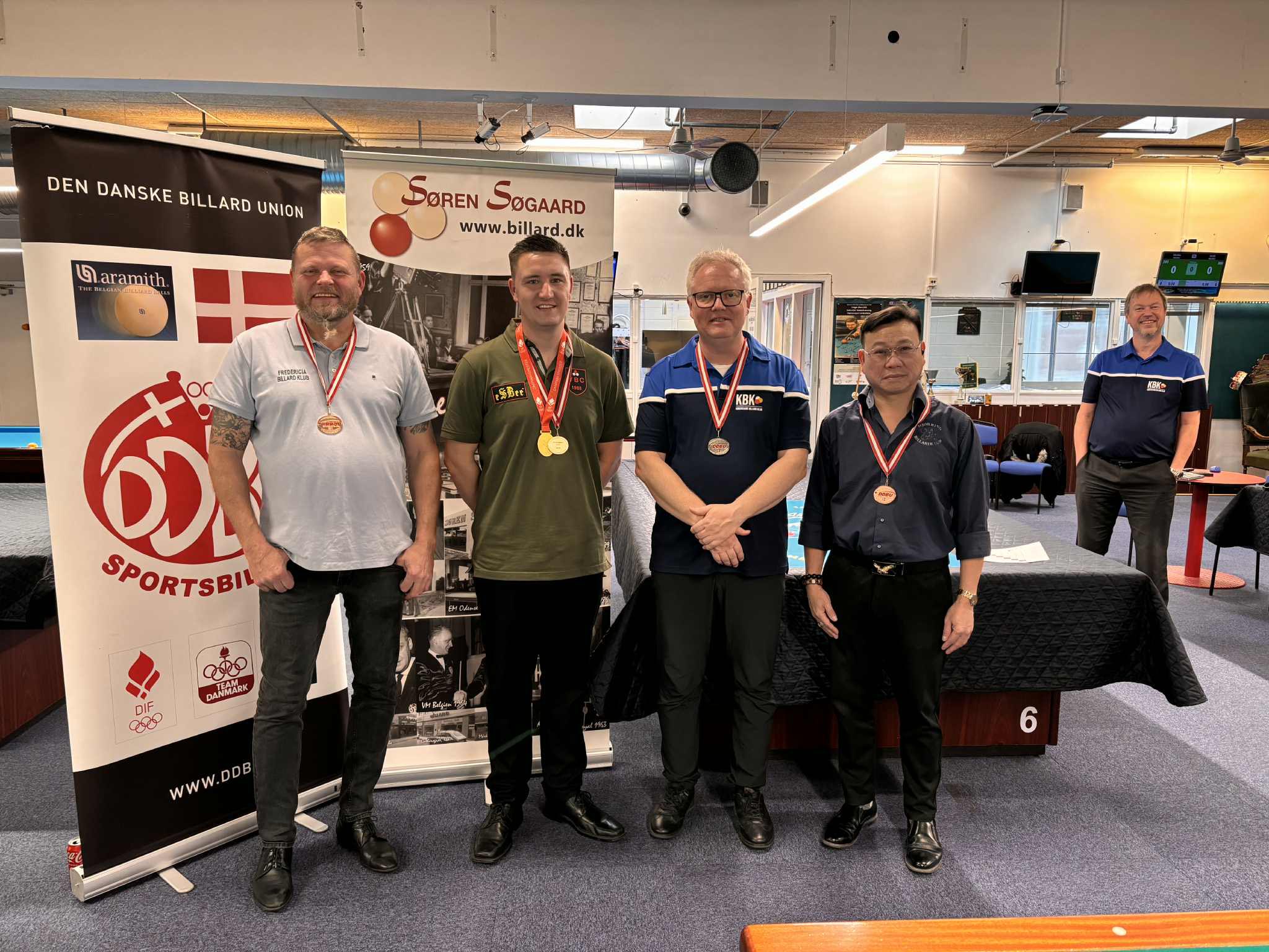 Ved DM var der bronzemedaljer til Van Son Ha fra Hjørring samt Martin Hylander fra Fredericia. Femte- og sjettepladsen gik til henholdsvis Claus Andreasen fra Nexø BK samt Jeppe Kjølby fra Næstved BK, som begge har haft holdt en pause fra de klassiske Carambolespil, men som nu altså er på vej igen.