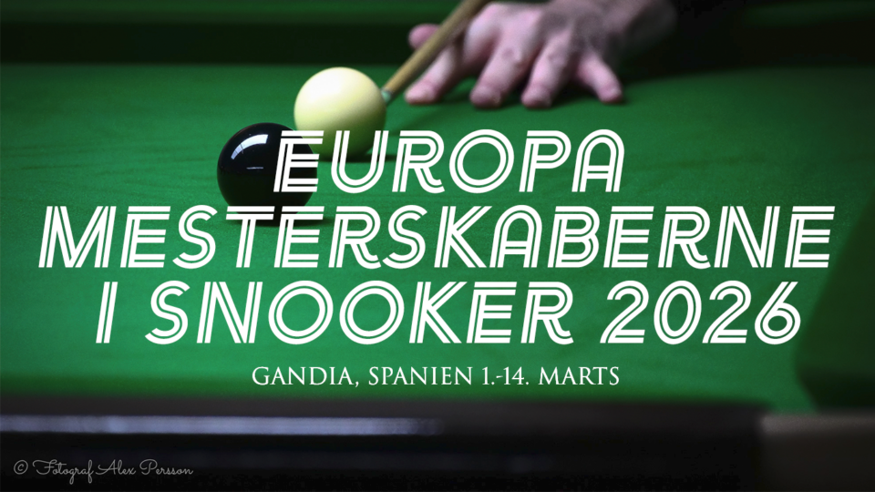 Om nogle uger starter EM i Snooker 2026, der er en af årets store højdepunkter for snooker. Helt præcist går det løs søndag d. 1. marts, hvor U16 kickstarter årets EM. Efterfølgende bliver der spillet U18, U21 og til sidst Mens/Mixed, som afslutter braget med en finale d. 14. marts. Det er første gang, at det spanske forbund (R.F.E.B.) hoster mesterskaberne, og forventninger er i år en smule højere end de plejer – ikke kun fordi det er første gang der afvikles EM i landet, men også fordi, at der i alle discipliner er rekord mange tilmeldte! Det er derfor et historisk stort EM på flere måder, som vores fire spillere og to dommere skal deltage i.